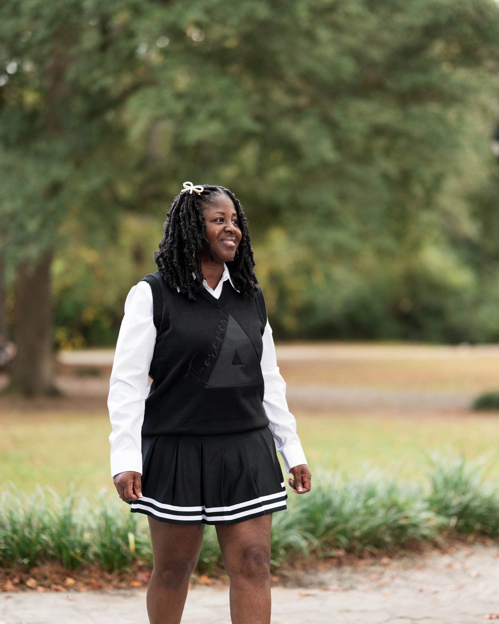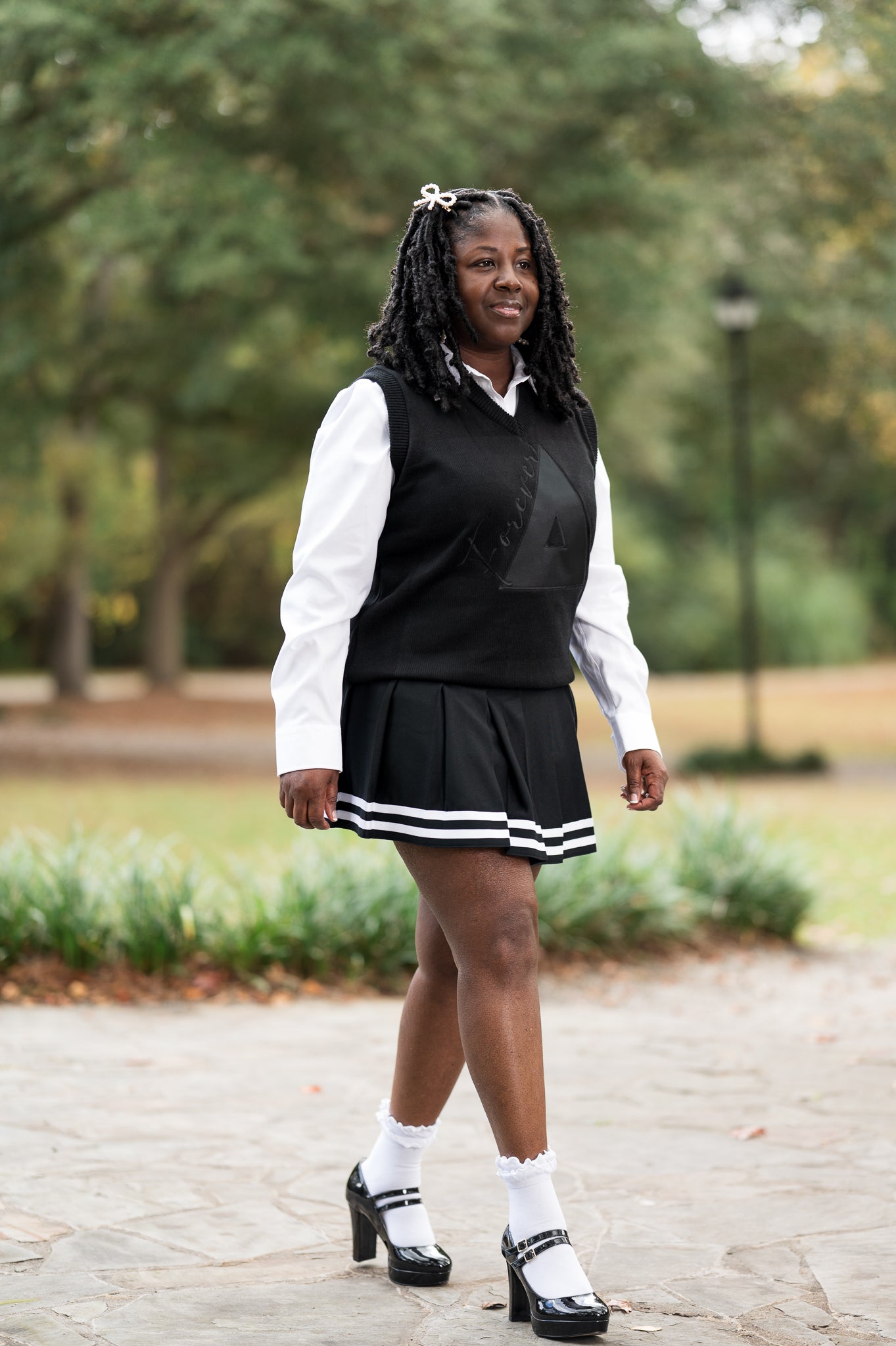 Classy and stylish! This super cute sweater is a new addition to D'Vine Greek! The sleeveless sweater features a new exclusive embroidered design in the "Forever Delta" Collection. Additional colors will be added soon! Dry Clean only!